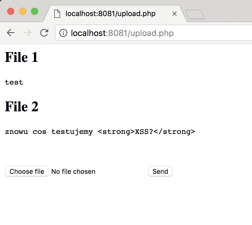 - treść pliku wyświetlana na stronie – XSS?