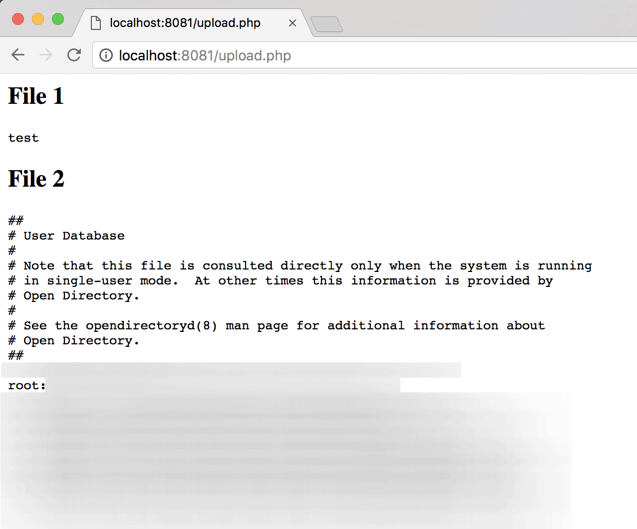 Co się stanie, jeśli w archiwum umieścimy symlink wskazujący na przykład na plik /etc/passwd? Sprawdźmy to! Jeśli chcesz sama/sam przetestować działanie skryptu, skopiuj powyższy kod do pliku i w tym samym folderze uruchom serwer PHP poleceniem php -S localhost:8081. Następnie odwiedź stronę http://localhost:8081/upload.php .